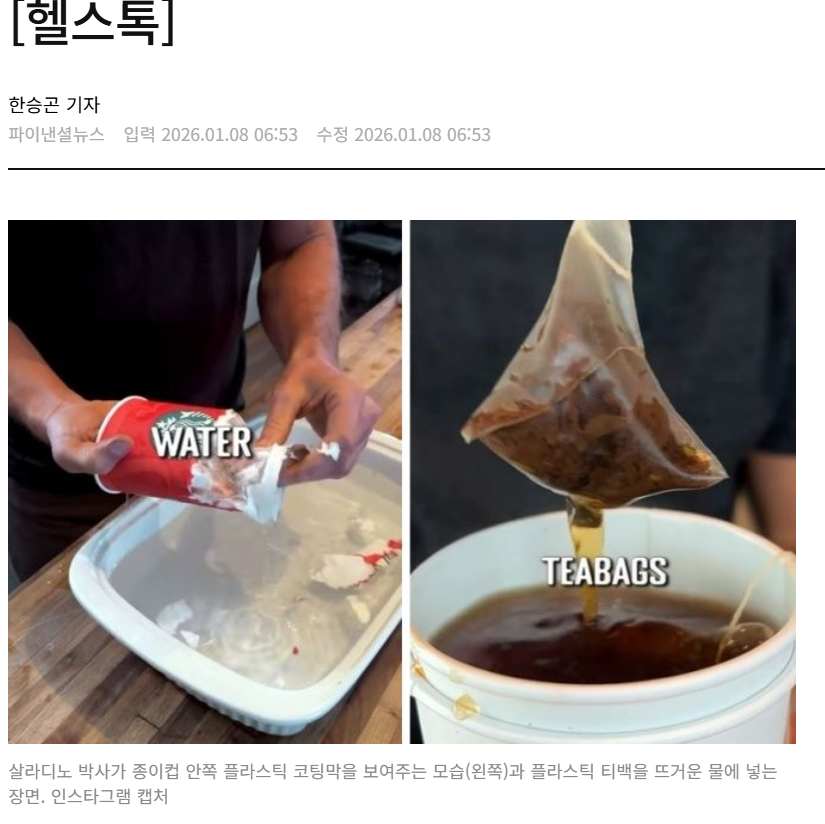 종이컵과 티백, 캔, 플라스틱 도마 등 가정에서 흔히 사용하는 생활용품이 DNA 손상과 암을 유발할 수 있는 미세플라스틱을 대량으로 배출한다는 지적이 제기됐다. 일상 속 평범한 제품들이 미세플라스틱 노출의 주범으로 지목돼 주의가 요구된다.