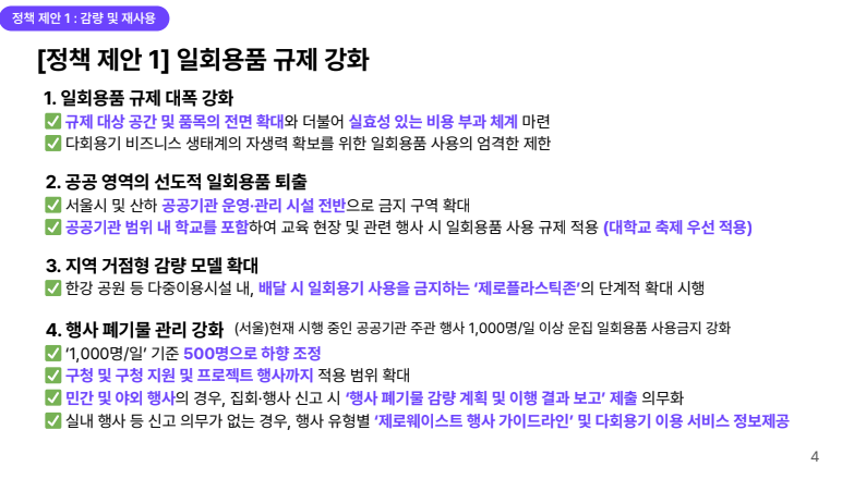 발생원에서의 철저한 감량과 공유 문화를 확산시키고, 혼입물 문제를 해결하기 위한 배출 체계의 근본