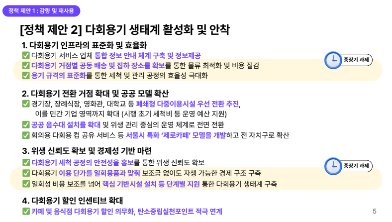 필요하다. 공공기관이 선도적으로 감량 모델을 만들고, 폐쇄형 다중이용시설 우선으로 다회용기