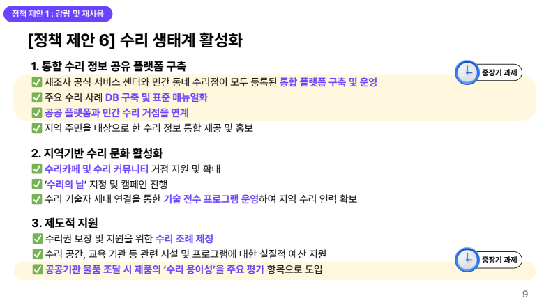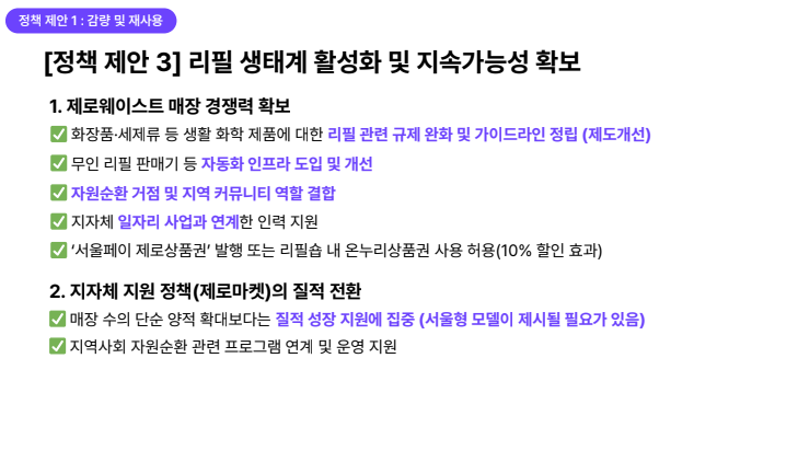 생태계를 만들어야 한다. 리필 및 수리, 중고거래 인프라 등의 구축도 필요하다.