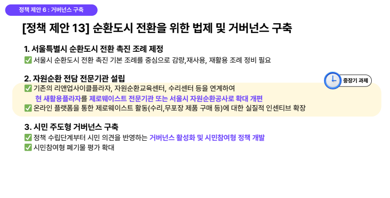 서울시 자원순환 정책 시행을 담보하기 위한 체계적인 조례의 정비가 필요하며, 자원순환