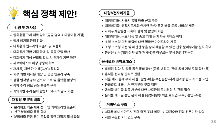 부디 아래 정책들이 서울시에 정책보고서로 채택되고, 앞으로 있을 지자체 선거에서도 공약으로 받아들여지면 좋겠습니다.