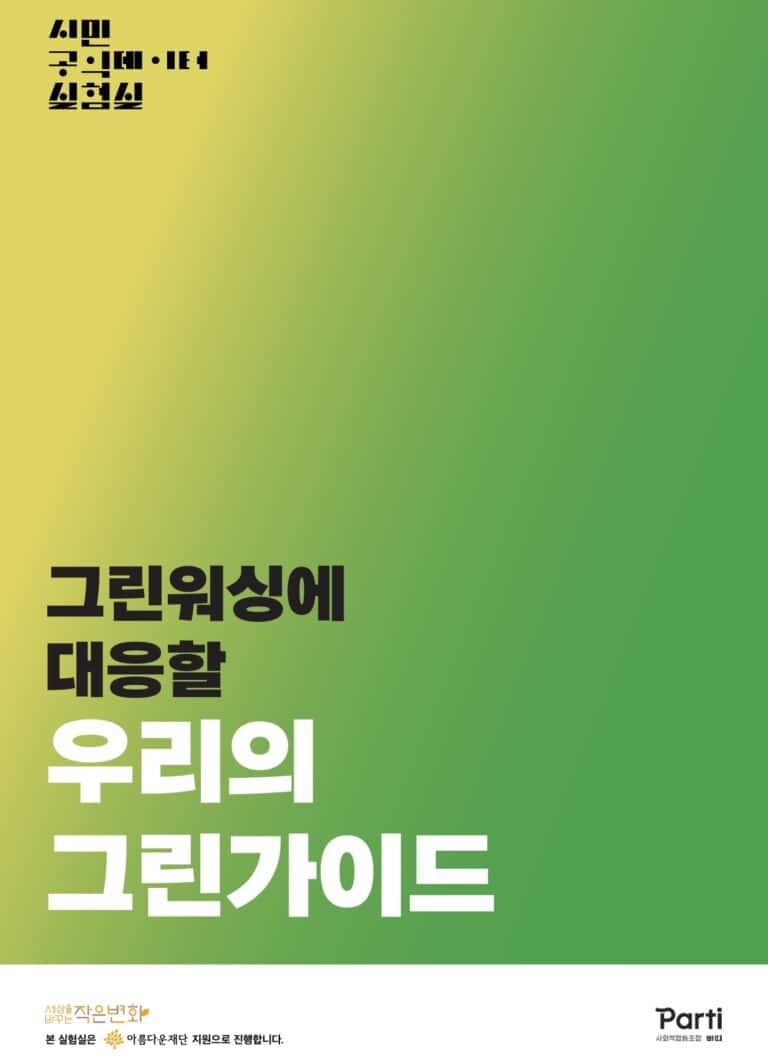 빠띠에 모인 청년들이 개최한 그린워싱 알아보기 공론장에 다녀왔어요. 그린워싱에 대한 문제의식에서 시작한 후 자료를 모으고 그린워싱을 판별할 수 있는 기준을 제안하는 그린가이드를 펴냈습니다. 그린가이드는 국내 상황을 토대로 구체적으로 제안하니 꼭 읽어보시면 좋겠어요:) ????소비자의 주관에 맡겨진 판단: 친환경 vs 그린워싱 …