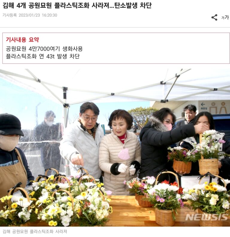 바람에 풍화되어 미세플라스틱을 만들던 조화가 김해 묘지에서부터 퇴출됩니다. 법적 규제는 아직 없지만 지자체 장의 역할로도 이렇게 변화를 만들 수 있네요. 무덤에 놓는 꽃은 플라스틱 조화 대신 생화나 드라이플라워로 준비해볼까요? 하지만 추운 날에는 꽃을 키울 때도 많은 에너지가 드니까, 겨울에는 꽃…