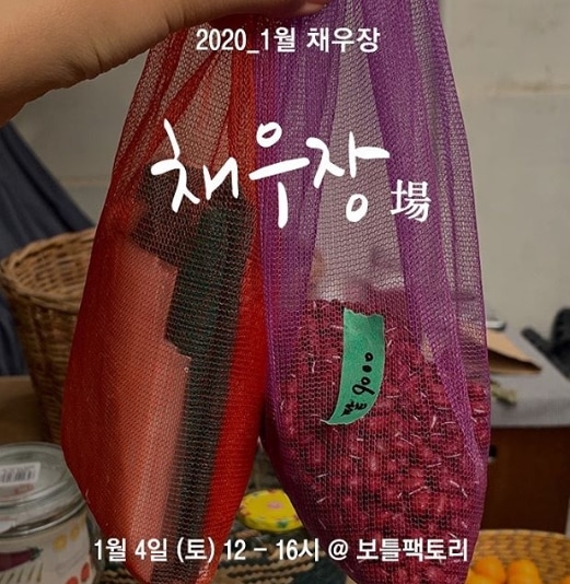 한 달에 한 번, 버릴 것 없이 장보기! 일회용품을 쓰지 않는 플라스틱 프리 카페 ‘보틀팩토리’에서 플라스틱 프리 장터, <채우장>이 열립니다. 한 달에 한 번 열리는 채우장, 2020년 1월 4일에 새해의 첫 시작을 알립니다. 시간: 1월 채우장 : 1월 4일(토) 12-4시 장소: 서대문구 연희동 708(보틀팩토리) 채우장 인스타그램: https://www.instagram.com/chaewoojang/ ✔️먹거리 – @lodge190 그래놀라– @chef_de_culture 소금, 깨, 들깨가루, 참기름과 들기름, 보리차, 옥수수차, […]