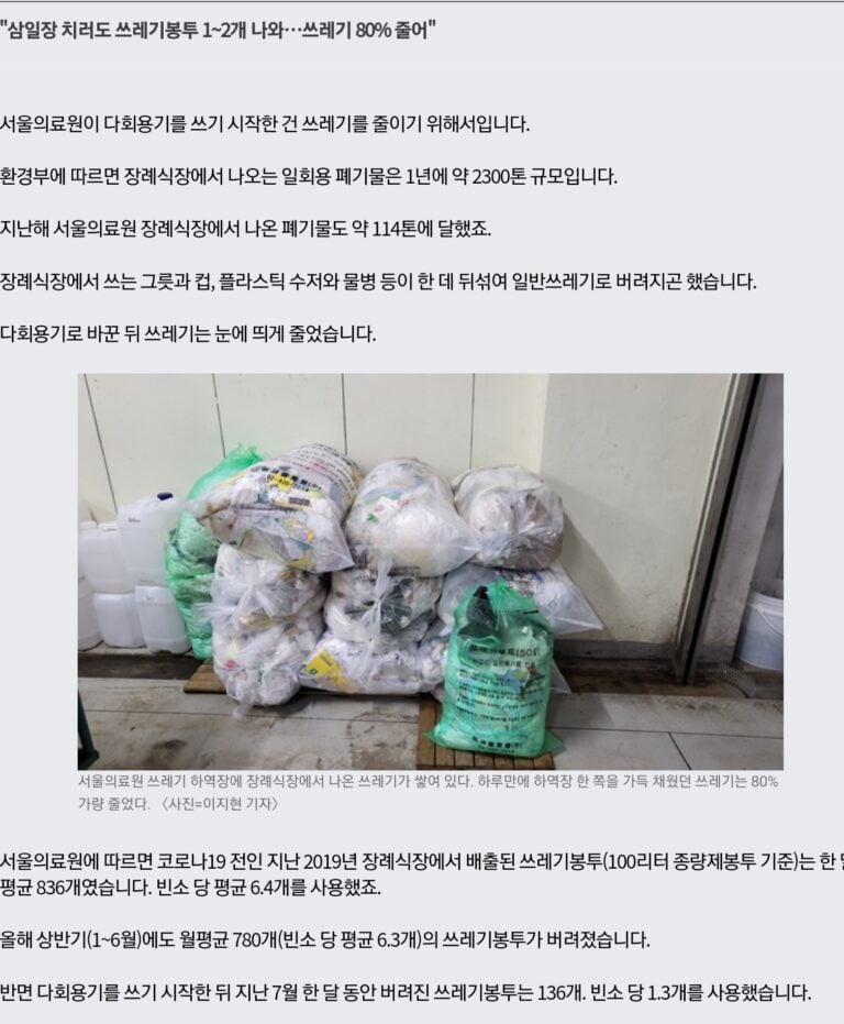[대안] 일회용품 금지 장례식장, 쓰레기 80% 줄었다