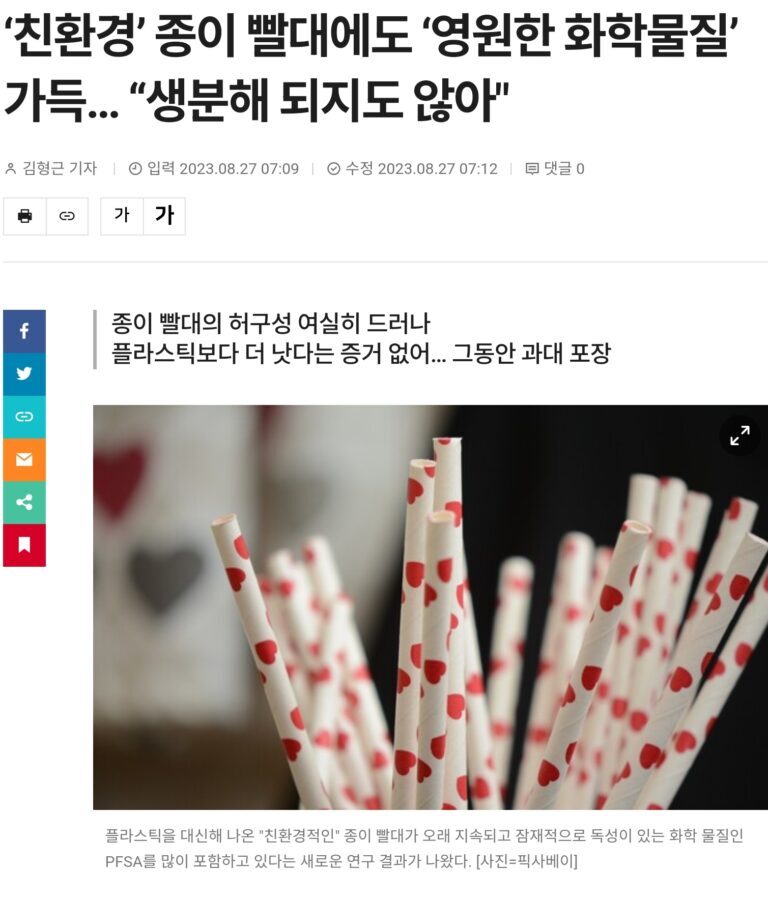 [뉴스퀘스트] 빨대에서 과불화화합물 검출됨, 그냥 마시는 게 젤이야