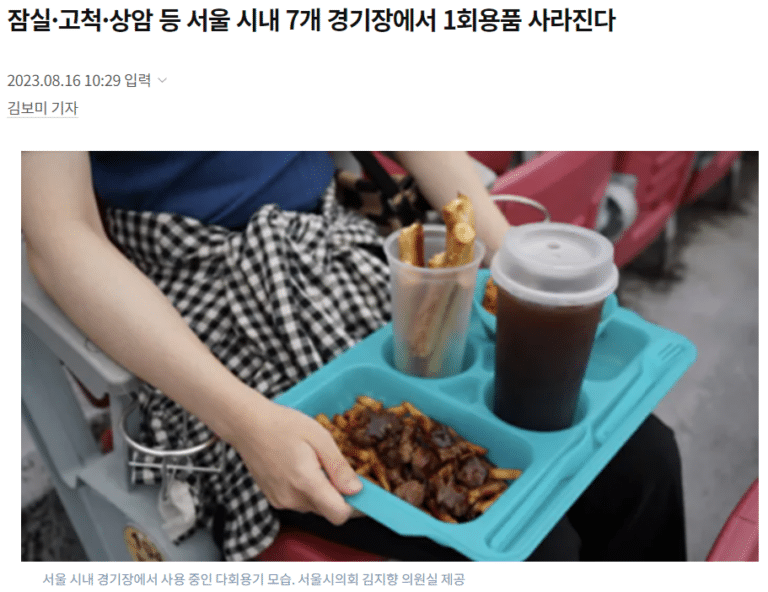 [경향신문] 잠실·고척·상암 등 서울 시내 7개 경기장에서 1회용품 사라진다