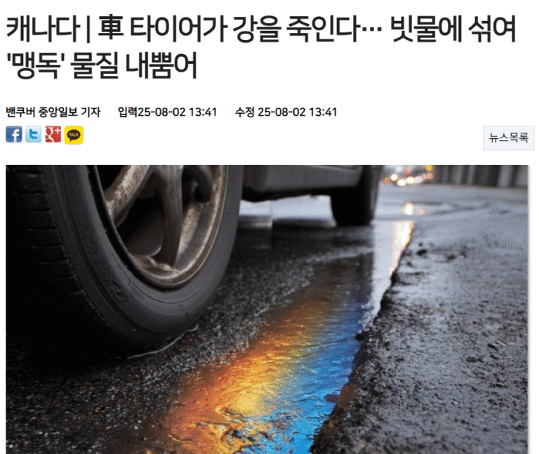 [벤쿠버 중앙일보] 캐나다 | 車 타이어가 강을 죽인다… 빗물에 섞여 ‘맹독’ 물질 내뿜어