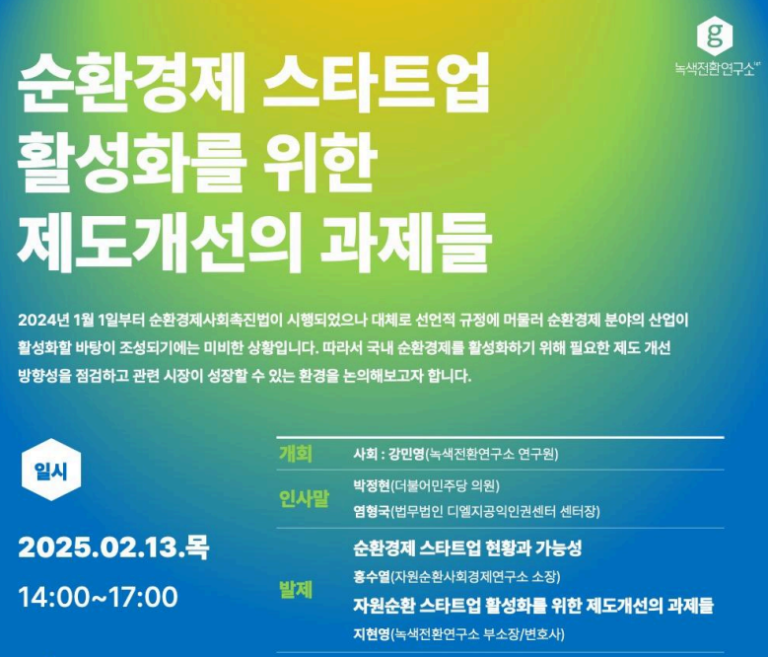 [토론회] 순환경제 스타트업 활성화를 위한 제도개선의 과제들