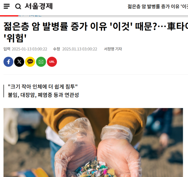[서울경제]젊은층 암 발병률 증가 이유 ‘이것’ 때문?…車타이어 등 미세 플라스틱 ‘위험’