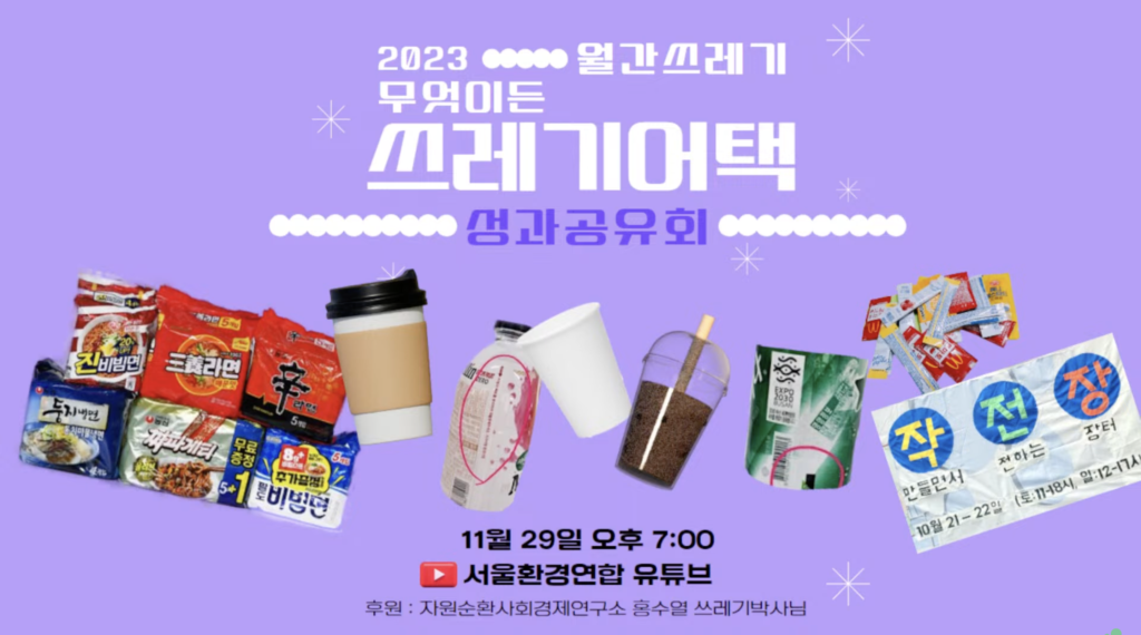 무엇이든 쓰레기어택! ‘라면은 왜 번들 포장이 되어 있지?’ ‘스포츠 응원 문화, 다회용으로 확산할 수 없을까?’ ‘페트병 라벨은 왜 이렇게 떼기 어려운 걸까?’ 일상생활에서 마주한 쓰레기 문제들, 우리가 직접 해결한다! [11월 월간쓰레기] 무엇이든 쓰레기어택 성과공유회에서 확인해 보아요👀 꽃도안녕; 번들 어택 제로 웨이스트 숍 세 곳이 모여서 팀을 꾸렸어요! (꽃삼월-도가게-안녕상점) 번들어택을 하게 된 이유 제로 웨이스트 숍을 […]