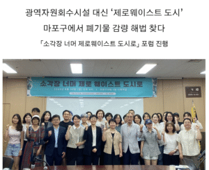 광역자원회수시설 대신 ‘제로웨이스트 도시’마포구에서 폐기물 감량 해법 찾다 「소각장 너머 제로웨이스트 도시로」 포럼 진행 2025년 6월 30일 서울시의 추가 소각장 설치 계획으로 몸살을 앓고 있는