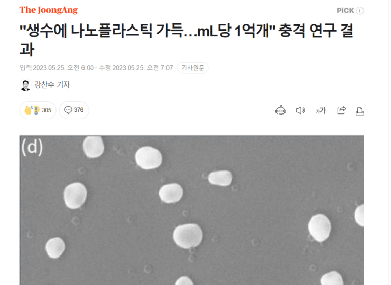 [중앙일보] “생수에 나노플라스틱 가득…mL당 1억개” 충격 연구 결과